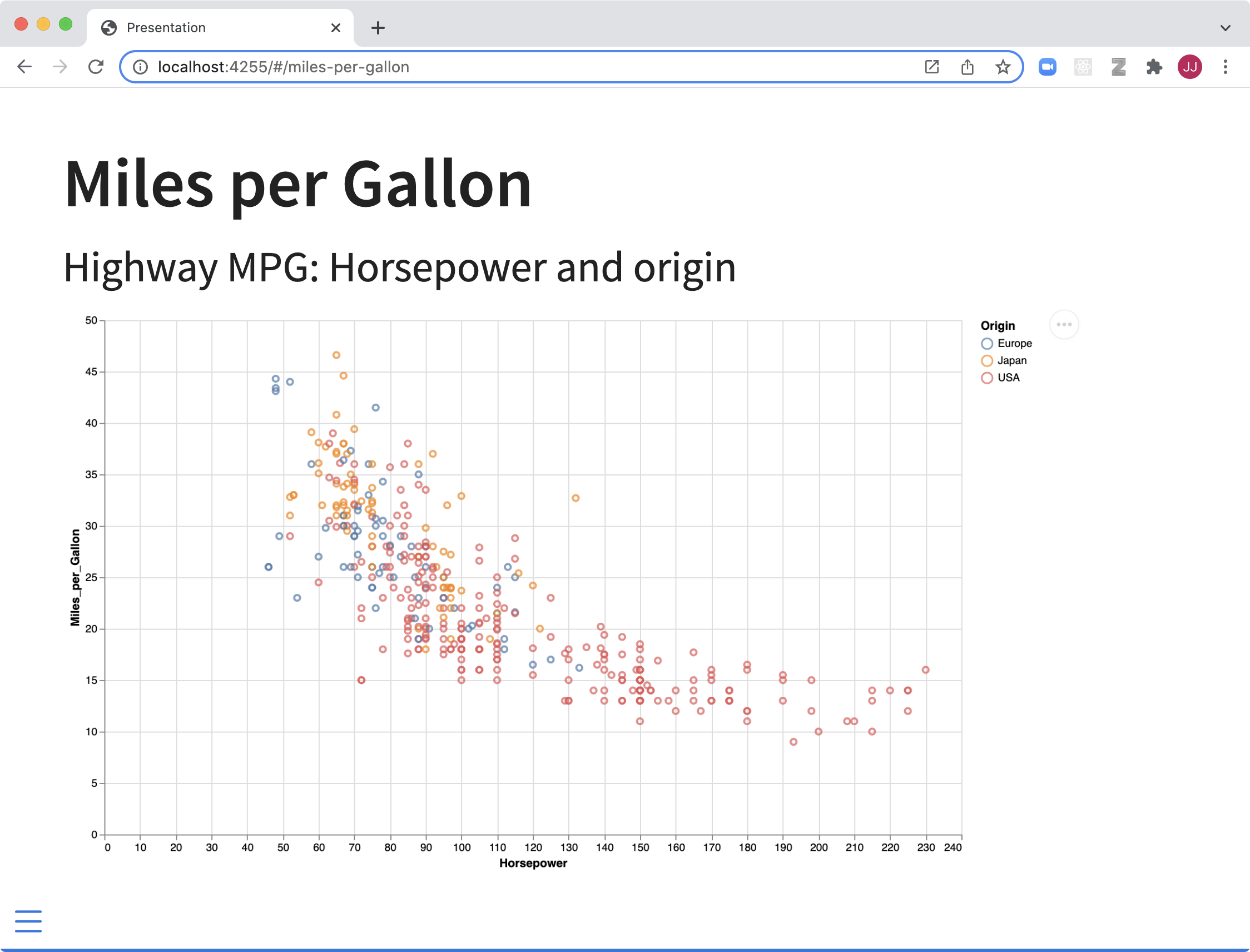 Turn presentations into applications with Observable and Shiny. Use component layout to position inputs and outputs.